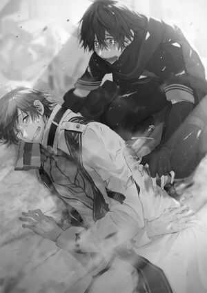 "Manato!" Haruhiro berlutut di sisi Manato. Apakah tidak apa-apa jika dia menyentuhnya? Apakah tidak masalah? Dia tidak tahu. ”Manato ...lukamu ... sihir penyembuhan! Gunakan sihir penyembuhan untuk menyembuhkan lukanmu sendiri ...”